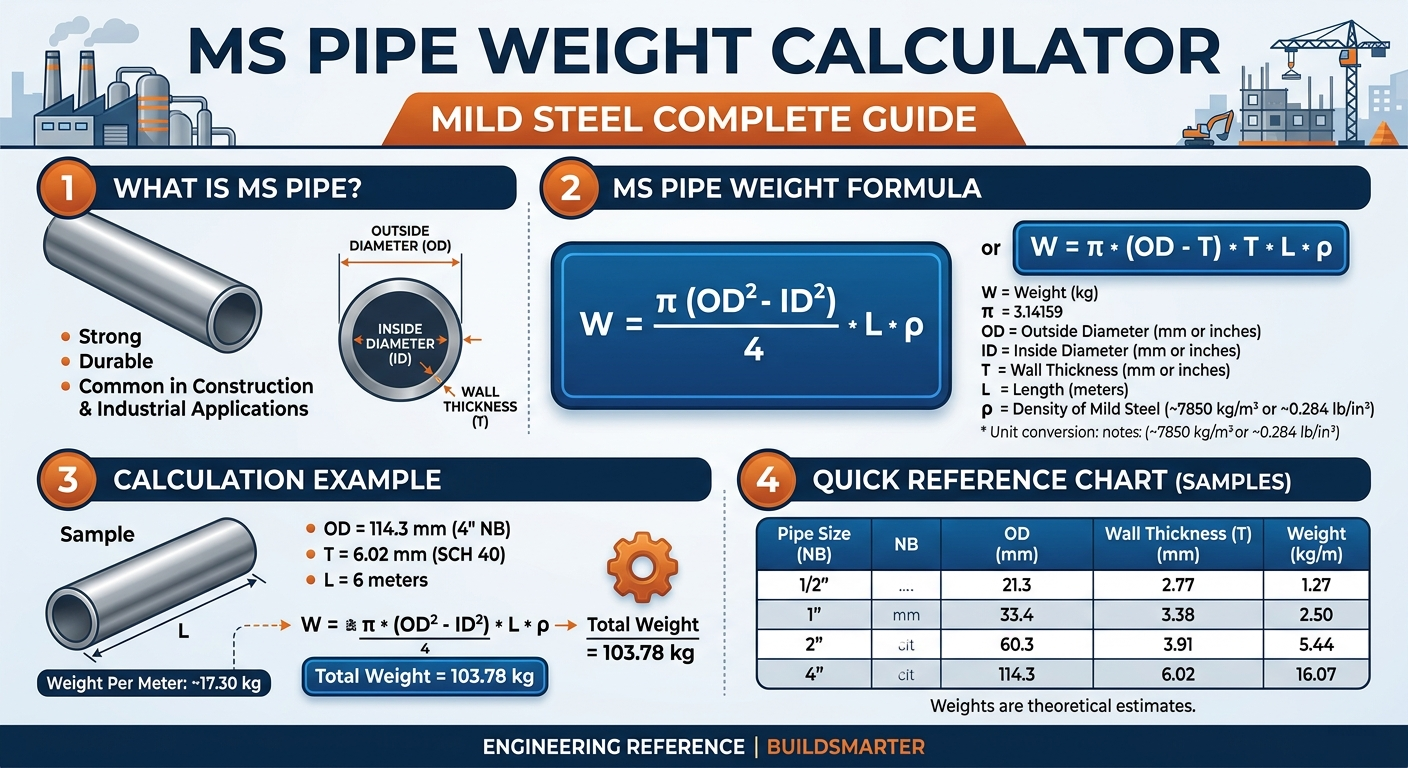 MS Pipe Weight Calculator (Mild Steel Complete Guide) Calculating MS (Mild Steel) pipe weight is essential for construction, fabrication, and industrial projects. Whether you’...